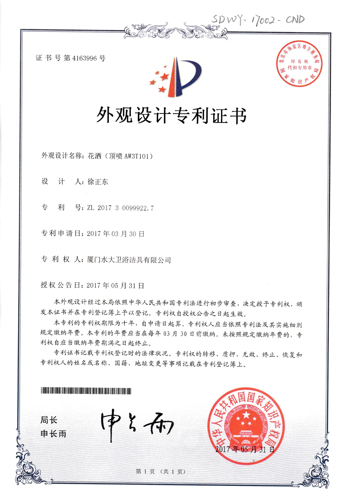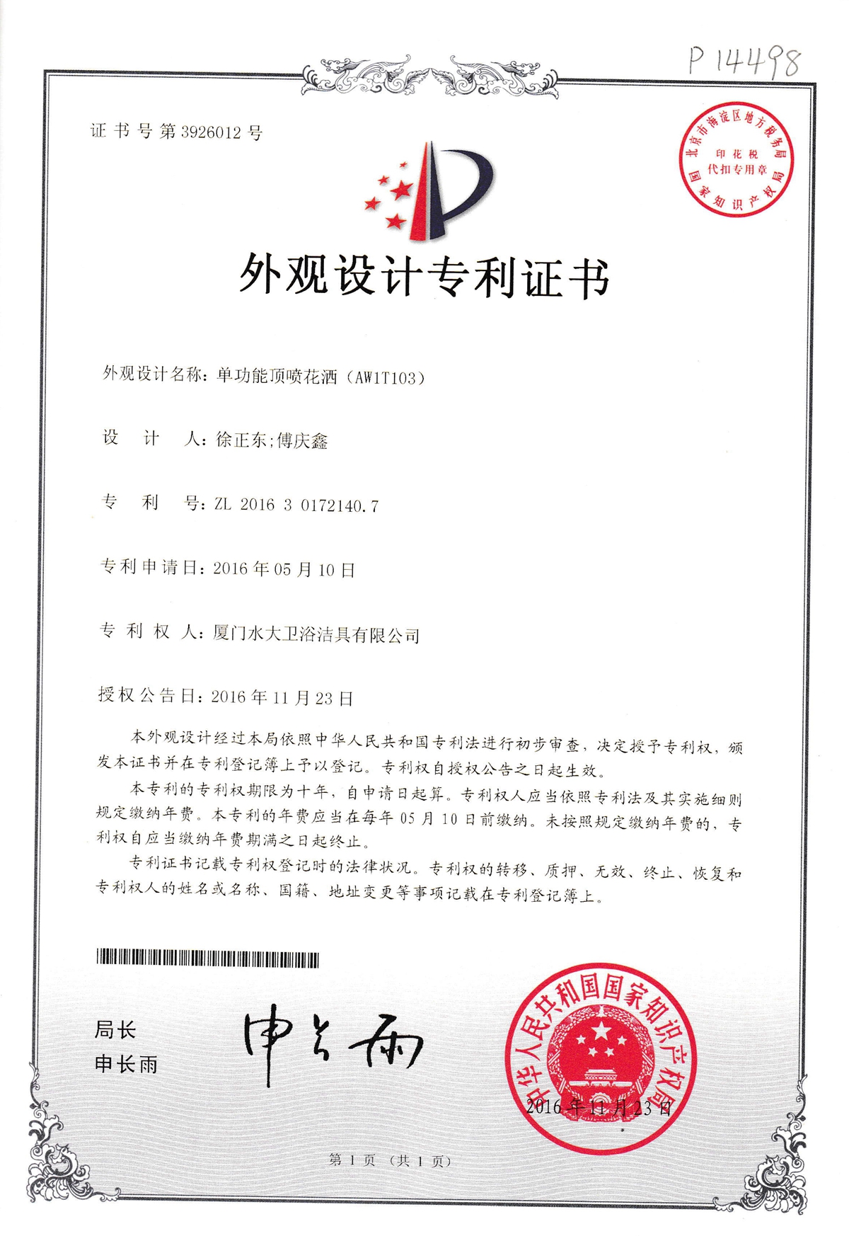 Single function top spray shower(AW1T103)