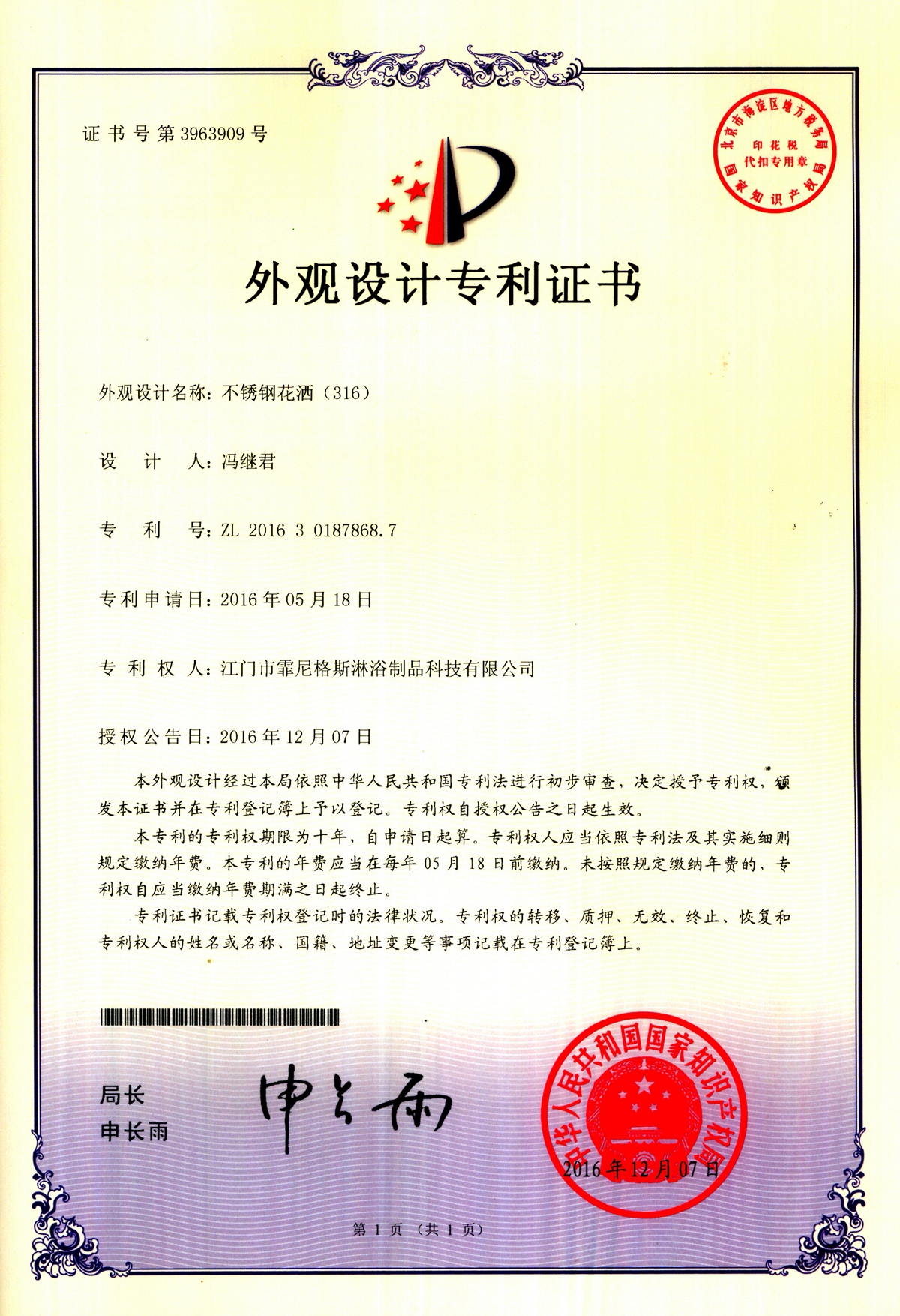 Stainless steel shower (the fifth generation SUFO3A)
