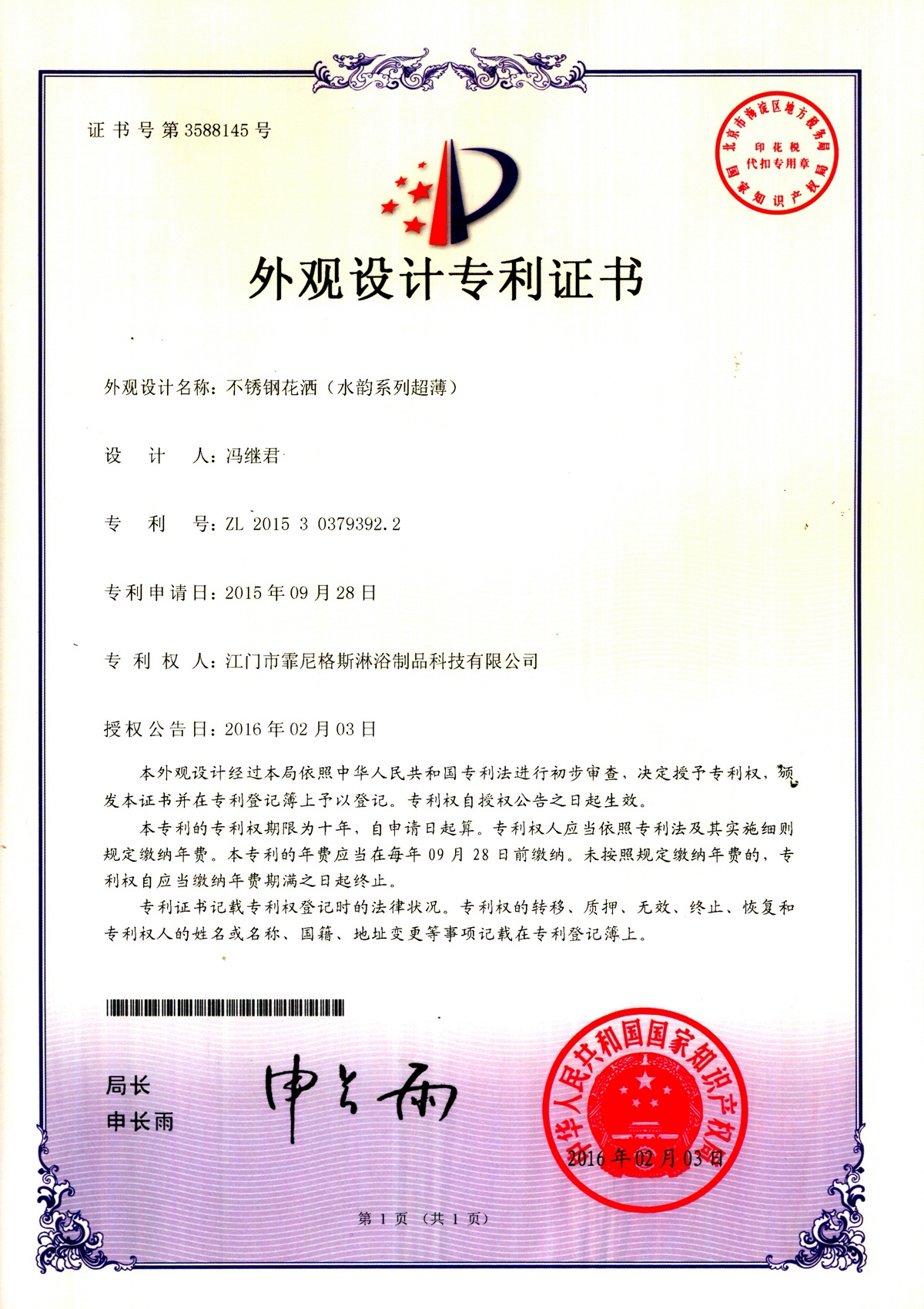 Stainless steel shower (water rhyme series ultra-thin)